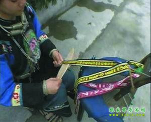苗家花帶,織花帶,是苗家姑娘最盛行最喜愛(ài)的一種習(xí)俗。在苗家,從女兒長(zhǎng)到七八歲起,母親就要叫他做針線活,待到十歲左右就交他學(xué)織花帶,如果母親技藝不高,還要請(qǐng)寨子里花帶技術(shù)最高的婦女來(lái)教。又得女孩子,從母親或姐姐那里初步學(xué)到織花帶技術(shù)后,就在本寨子邀同齡伙伴,三五個(gè)在一起,互相切磋技藝。待到編制技術(shù)日趨成熟后,姑娘也大了,就往往一個(gè)人躲在房中編制出色鮮艷的花帶,風(fēng)險(xiǎn)少女的情愛(ài)。苗家姑娘,往往拿自己編制的花帶作為禮品相贈(zèng),特別是姑娘有了意中人,就吧花帶作為愛(ài)情的信物相贈(zèng),以表示以身相許,愛(ài)情純貞。