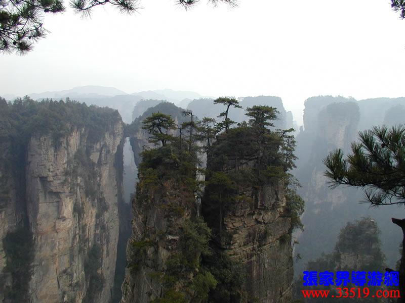 (天下第一橋)更多天下第一橋圖片>>>> 那就是“天下第一橋”。你們看,兩座山峰被一條長(zhǎng)廊連在一起,形成天然橋洞,平時(shí)吞云吐霧,氣勢(shì)壯觀雄奇。橋面寬約兩米,長(zhǎng)20余米,絕對(duì)高度357米。橋上蒼松挺拔,橋邊古藤垂掛,橋下深不可測(cè)。走在橋上,只見霧氣蒸騰,松濤呼嘯,石橋好像也顫顫悠悠,晃晃搖搖似的,令人驚心動(dòng)魄。這里是張家界風(fēng)景一絕,是大自然的一個(gè)奇跡。