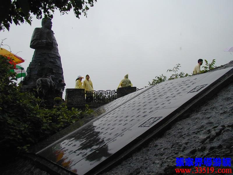 (賀龍銅像)賀龍?jiān)獛浭侵腥A人民共和國(guó)的開國(guó)元?jiǎng)?,人民解放軍的締造者之一。他就出生在天子山西?a class="insidelink" href="http://m.kunyuzao.com/cityinfo/17202231731.html" title="桑植縣">桑植縣洪家關(guān)的一個(gè)農(nóng)民家庭,從兩把菜刀砍鹽局首義起,一生充滿傳奇色彩,元帥家鄉(xiāng)流傳著無數(shù)關(guān)于他的故事與傳說。天子山一帶曾經(jīng)是賀龍、任弼時(shí)、肖克、王震等將軍打過游擊的地方。一回,賀龍?jiān)阼尮乃幻駡F(tuán)包圍了,當(dāng)?shù)乩习傩占敝猩?,把賀龍卷在斗墊里,躲過了殺身之禍。這個(gè)故事至今還在這一帶流傳。