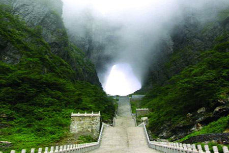 早上8:00長沙火車站集合后,經(jīng)長張高速往張家界市,赴天門山國家森林公園旅游,乘坐“世界第一長高山客運索道(全長7455米,高差1279米)”, 體驗騰云飛翔的刺激震撼,28分鐘到天門山頂:登張家界之巔云夢仙頂,俯瞰張家界全景,體驗凌空獨尊的豪情, 游覽東線碧野瑤臺景區(qū),觀賞奇妙美麗的盆景花園,游覽盆景石區(qū)、天門翻水、北俯視天門、靈泉、靈泉院,登云夢仙頂,體驗“云生腳下、奇峰盡覽、萬象目中”的豪邁感覺。游西線體驗鬼谷棧道的驚心動魄,在峭壁云端縱情尖叫。返凌霄臺欣賞城區(qū)風(fēng)光、領(lǐng)略山水長卷的磅礴氣勢,攀登 999 級臺階的上天梯,抵達(dá)天門洞底,感受造化神奇,盡情欣賞天門洞內(nèi)外的壯麗景色。至天門洞體驗自然造化的神奇和震撼沖擊。乘觀光汽車體驗99彎通天大道奇絕,沿途觀賞七級瀑布、金龜馱元寶、將軍峰、箭桿峰等景觀,天門山氣象獨特,門洞奇絕,植被豐富,歷史悠久,是歷史文化與佛道文化的神秘載體,是自然景觀與人文景觀的完美結(jié)合,故也是蜜月度假必游之地。