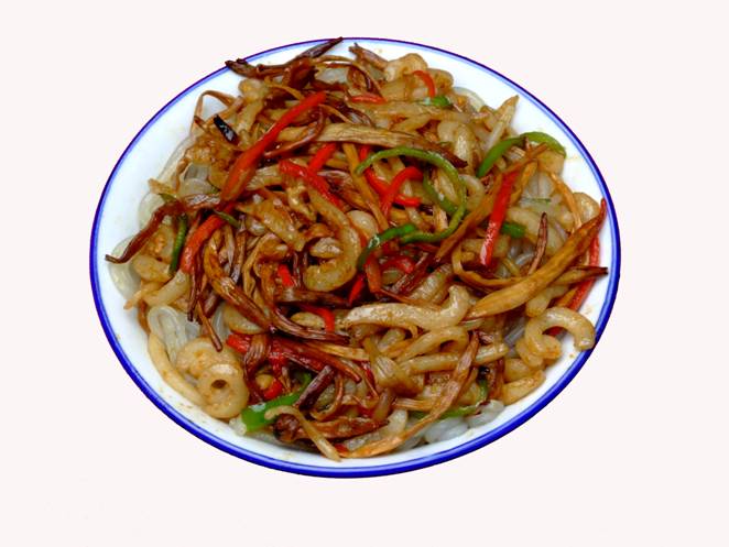 《張家界草帽面》。 這個名字的由來是因為老板常年戴著草帽賣面,臊子非常香,可以添加,面是他自己加工的據說是全手工的,老板人很古怪,每天只賣那么一點,以前更古怪,只有星期1、3、5的晚上9點才有賣,想吃他家的草帽面居然還得跟他打電話問他是否心情好,出不出來賣面?預約了才不會撲空。但是就因為這點神秘,所以他家的面有些神話色彩。在汽車站口百貨大樓東門對面的巷子口,一輛板車上面掛了一頂草帽,那就是了,不過每天下午1點左右就沒了,要吃啊,嘿嘿,您趕早!能不能吃的上,得看您造化咯!