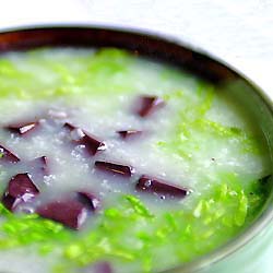 名稱: 豬血稀飯 介紹: 豬血稀飯,為土家人祭祀、祭祖等特定場合具有特殊用途特殊意義的特殊食品。每年三月,是“白帝天王”的生日,屆時土家人殺豬祭祀。廟祝時煮豬血稀飯祭于神前。凡祭祀之人,都要分吃豬血稀飯一碗。此外,過年殺豬祭祖,也煮豬血稀飯。寨子里逢人都可舀一碗吃。有遠道來客,更要請吃一碗。