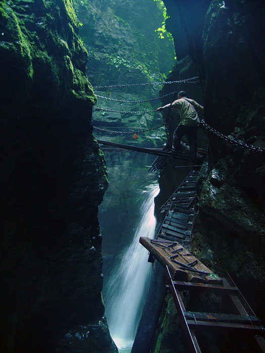 坐龍峽擁有中國第一條特種游道。所有游道均建于峽谷深處,依山取勢,既經(jīng)細(xì)心雕琢聽卻又渾然天成。粗樸的板栗木棧道,可以讓你零距離的親近那一潭碧幽、聽聞山泉叮咚;精巧的跳墩,可以讓你媳戲流泉、觸感溪瀑;原質(zhì)的石坎道,讓你不得不調(diào)動全部的身心能量悉心攀援、感悟峽谷;有驚無險(xiǎn)的鐵梯,讓你伴著腳下轟鳴的溪水,在驚怵中體味一份快慰。 出口出的土家山寨,保留了古樸獨(dú)特的生活習(xí)俗。一塊臘肉就一口醇香的“苞谷燒”會讓你洗去所有的疲憊,在輕松中憨厚的主人向你講述過去強(qiáng)人出沒的故事......