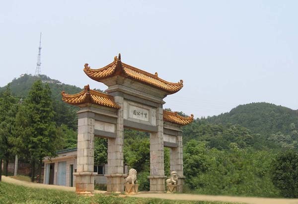 進入牌坊后,沿著水泥盤山公路可達(dá)公園景區(qū)
