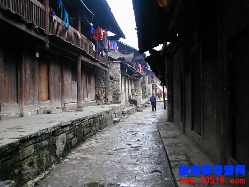 古寨建于唐宋,盛于明清。曾是澧水上游“千帆林立的老碼頭、商賈云集的古集市、梢公蕩魂的逍遙窟、明清社會的萬花筒”。古老的風(fēng)火墻、低矮的吊腳樓向游人展示著土家人的聰明才智,一條條青石板,一聲聲咚咚喹,在訴說著古寨子曾經(jīng)的輝煌。在澧水沿岸,至今發(fā)現(xiàn)人類活動的蹤跡已推到了三億多年前的舊石器時代,而桑植設(shè)縣也有2200多年的歷史。據(jù)專家考證,這座古鎮(zhèn)始建于唐宋,興盛于明清,已有近2000年的歷史。因?yàn)樗铣锌h府,下臨險峻峽谷,又居山臨水,地勢險要,歷來被稱為桑植的咽喉之地。