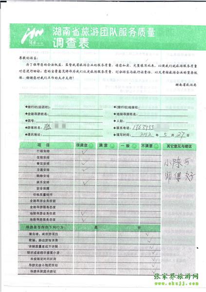 - 6月25日福建邵先生一行12人質(zhì)量反饋單