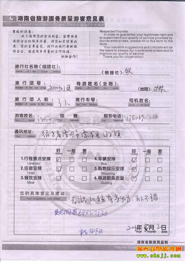- 2011年10月26日張小姐一行18人旅游質(zhì)量反饋 [10482]