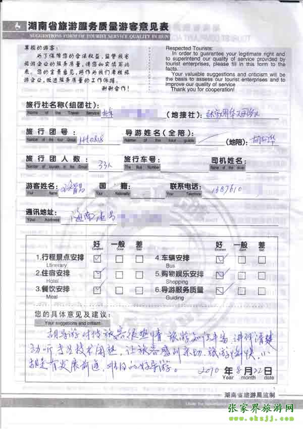 - 游客夏先生為表揚導游李姣姣寫來表揚信致我張家界... [14811]