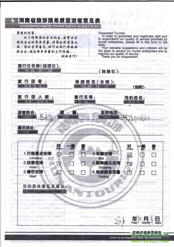 2010年10月6日呂小姐旅游質(zhì)量反饋