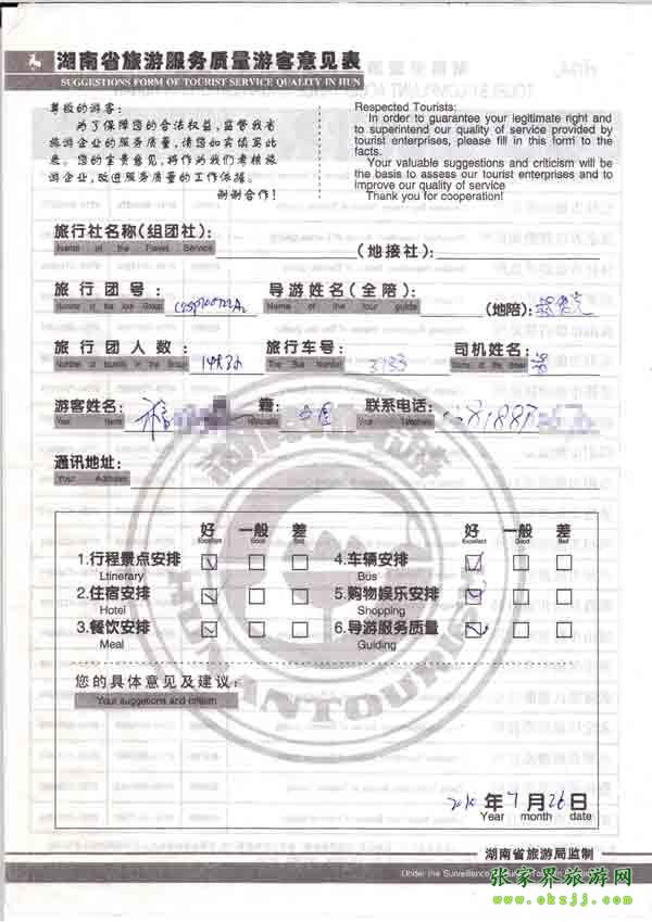 - 7月5日杭州沈先生一行18人質(zhì)量反饋單