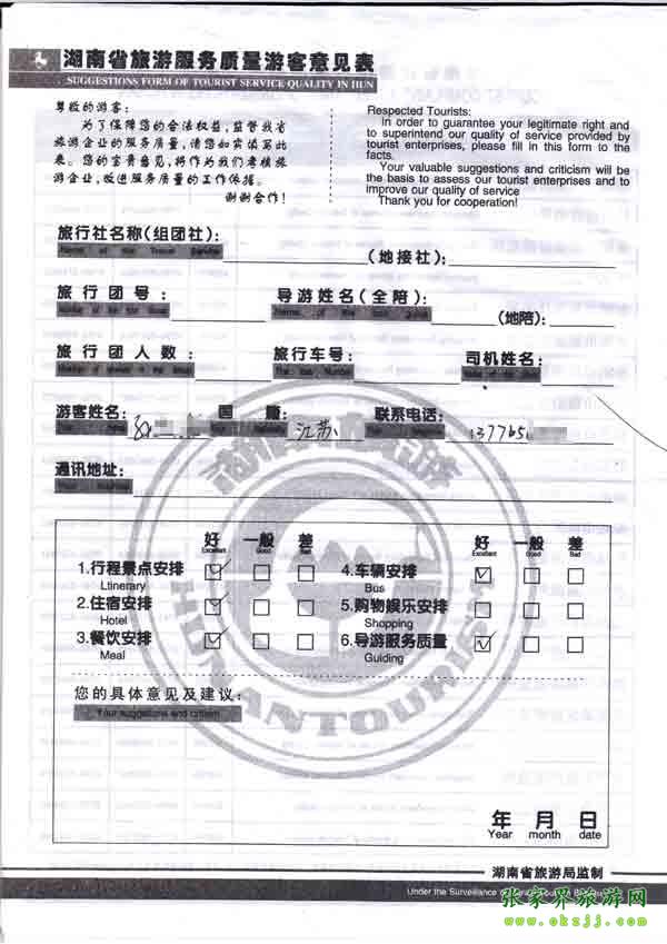 - 游客夏先生為表揚導游李姣姣寫來表揚信致我張家界... [14811]