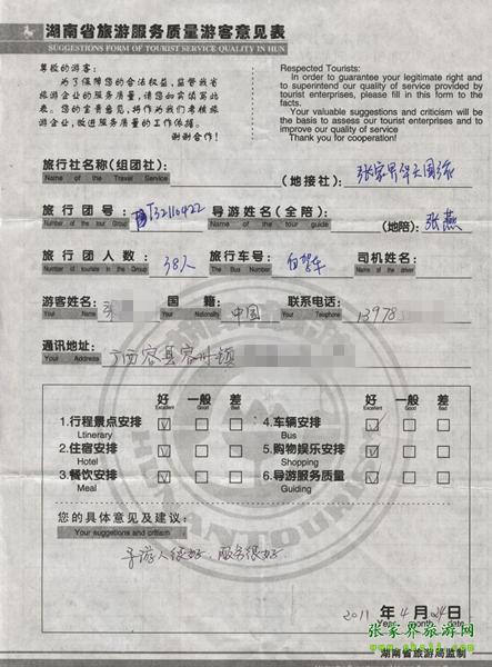 - 2011年10月26日張小姐一行18人旅游質(zhì)量反饋 [10482]