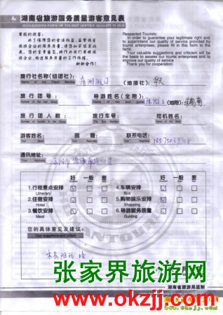 - 游客夏先生為表揚導(dǎo)游李姣姣寫來表揚信致我張家界... [14811]