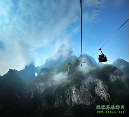 ![]() 纜車從天門山主峰云夢(mèng)仙頂至天門山寺前櫻桃灣廣場(chǎng),總長(zhǎng)度800米,單程運(yùn)行約10分鐘,為無(wú)遮蓋的雙人吊椅式,是天門山山頂?shù)囊粭l絕佳空中觀景長(zhǎng)廊。乘坐纜車緩緩飄行在林海之上,絕美的空中原始花園盡收眼底,白云裊裊,滿目碧翠,時(shí)有飛鳥在腳下掠過(guò),時(shí)有樹梢花朵似探手可及。神仙般的瀟灑飄逸和無(wú)比的心曠神怡讓人流連忘返。